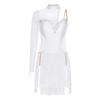 Damen Latin Tango Tanzkostüm Durchsichtiges Netz Patchwork Cut-out Rücken Funkelnde Strasssteine Asymmetrisches Fransenkleid