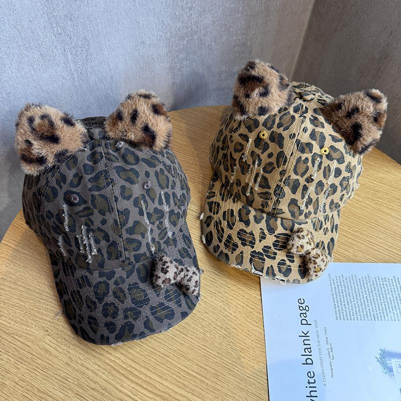 Korean version of retro y2k leopard print baseball cap for women's spring and autumn grinding and old casual cap U shows a small tide ins