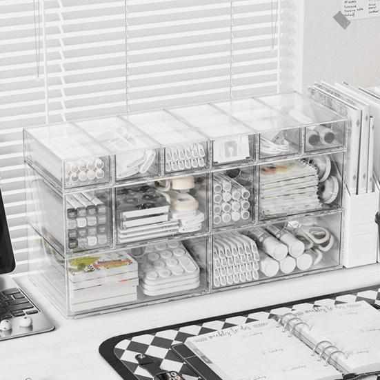 Schlankes, transparentes Design: Mit einer minimalistischen und klaren Ästhetik fügt sich diese Schreibtisch-Aufbewahrungsbox nahtlos in jede Wohn- oder Büroumgebung ein.. Seine glatte, staub- und wasserabweisende Oberfläche lässt sich einfach abwischen und behält ein poliertes Aussehen, das den Stil Ihres Raumes unterstreicht.