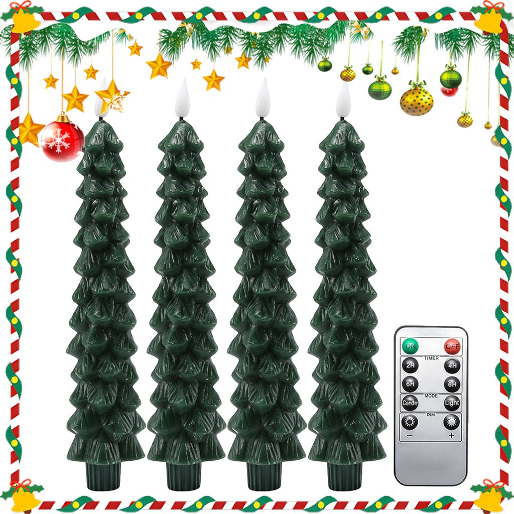 3D Christmas Tree Candles Flameless Taper Candles Remote Control Battery-powered Led Electronic Candle Light for Christmas Decor