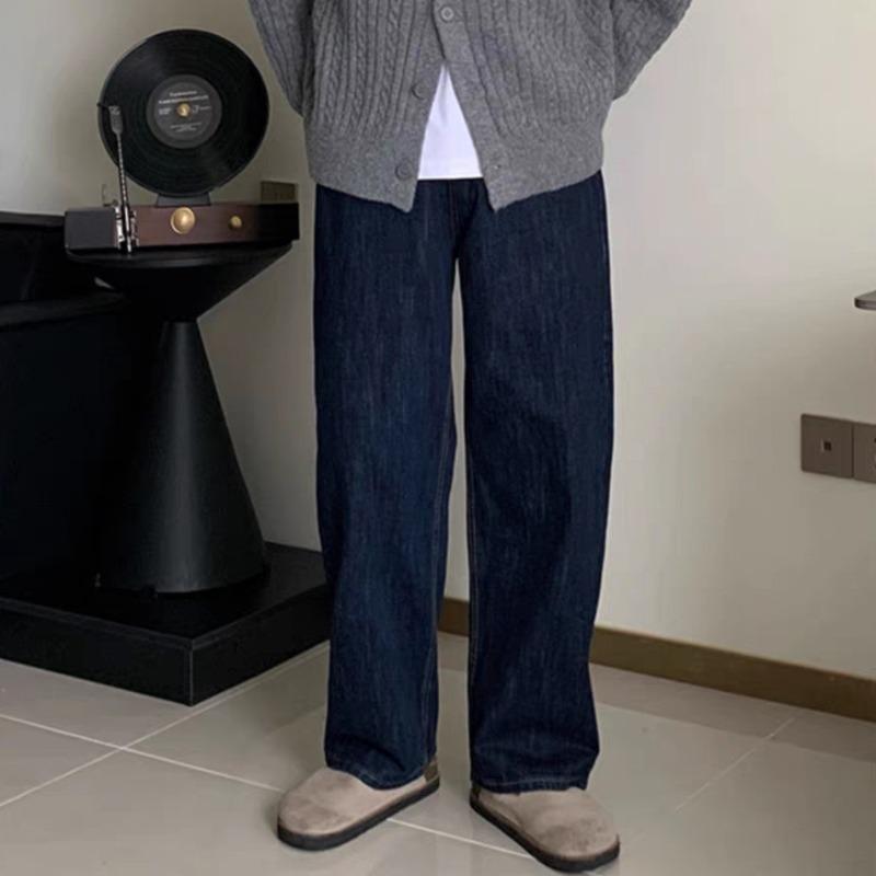 Herren k Blau Locker Weiter Bein Jeans Lässig Gerade Bein Hohe Taille Bequem Täglich Streetwear Hose