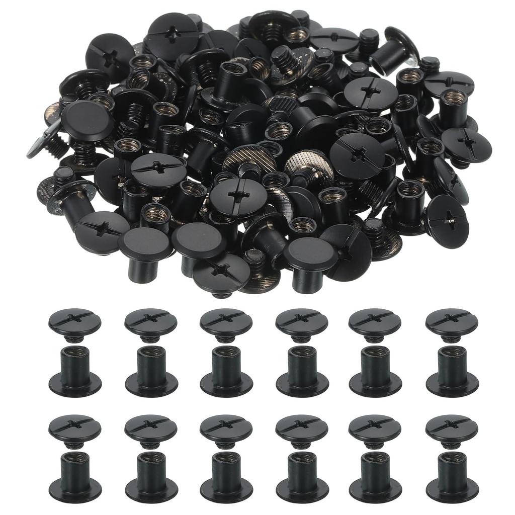 Spezifikationen: Farbe: Schwarz; Material: Kohlenstoffstahl; Durchmesser: 9,5 mm/0,37 Zoll (Deckel), 5mm/0,2" (Welle); Länge: 11 mm/0,43 Zoll (Insgesamt), 8 mm/0,31 Zoll (Welle); Set beinhaltet: 120 Chicago-Schrauben Leder-Nieten