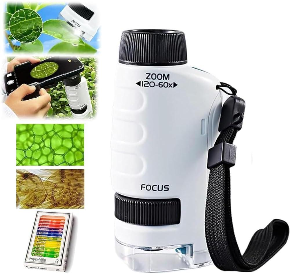 60-120x Mini Handheld Microscope Kit Pocket Microscope With LED Light Home School Biological Science Educational for Children