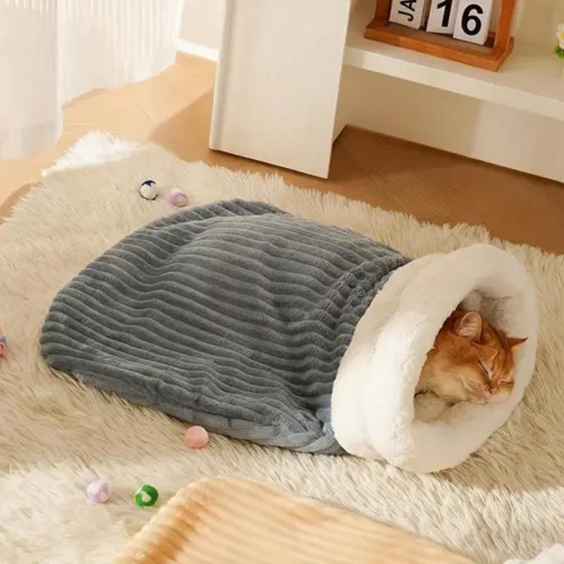 INS Comfortable Winter Warm Dog and Cat Beds - Thick Tunnel-like Pet House with Soft Beige Lining for Semi-Enclosed Hiding for Puppies and Cats