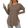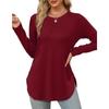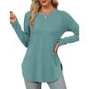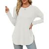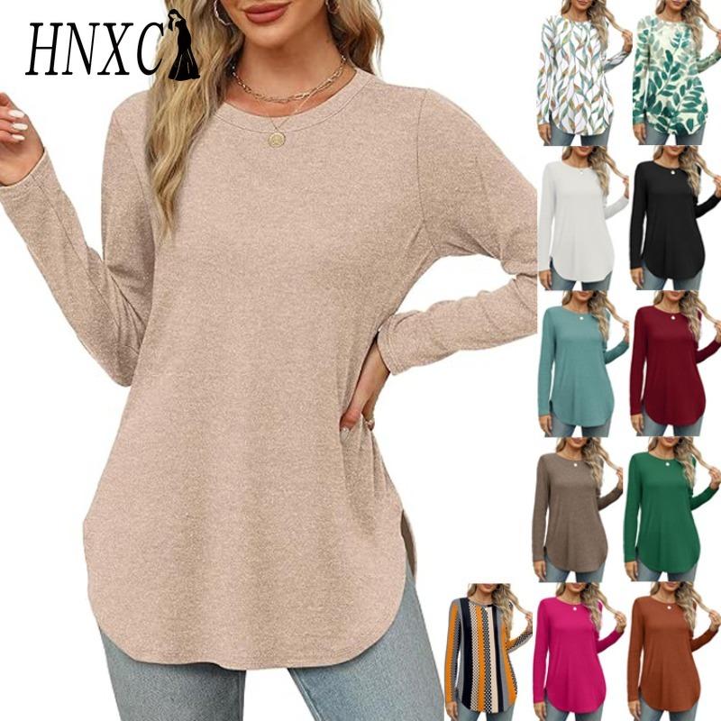 HNXC Damenmode, lässig, einfarbig, langärmelig, O-Ausschnitt, Blusen und Hemden