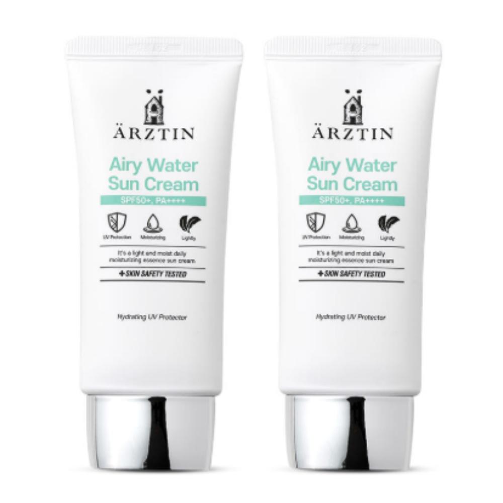Arztin Airy Water Sunscreen 1+1 deal, Korean lightweight sunscreen bundle, SPF 50+ PA++++ sun cream set, K-beauty hydrating sunblock value pack, non-sticky sunscreen no white cast, Arztin daily UV protection, water-based Korean sunscreen, professional sun care Korea, moisturizing sun cream 1+1, sensitive skin sun protection.