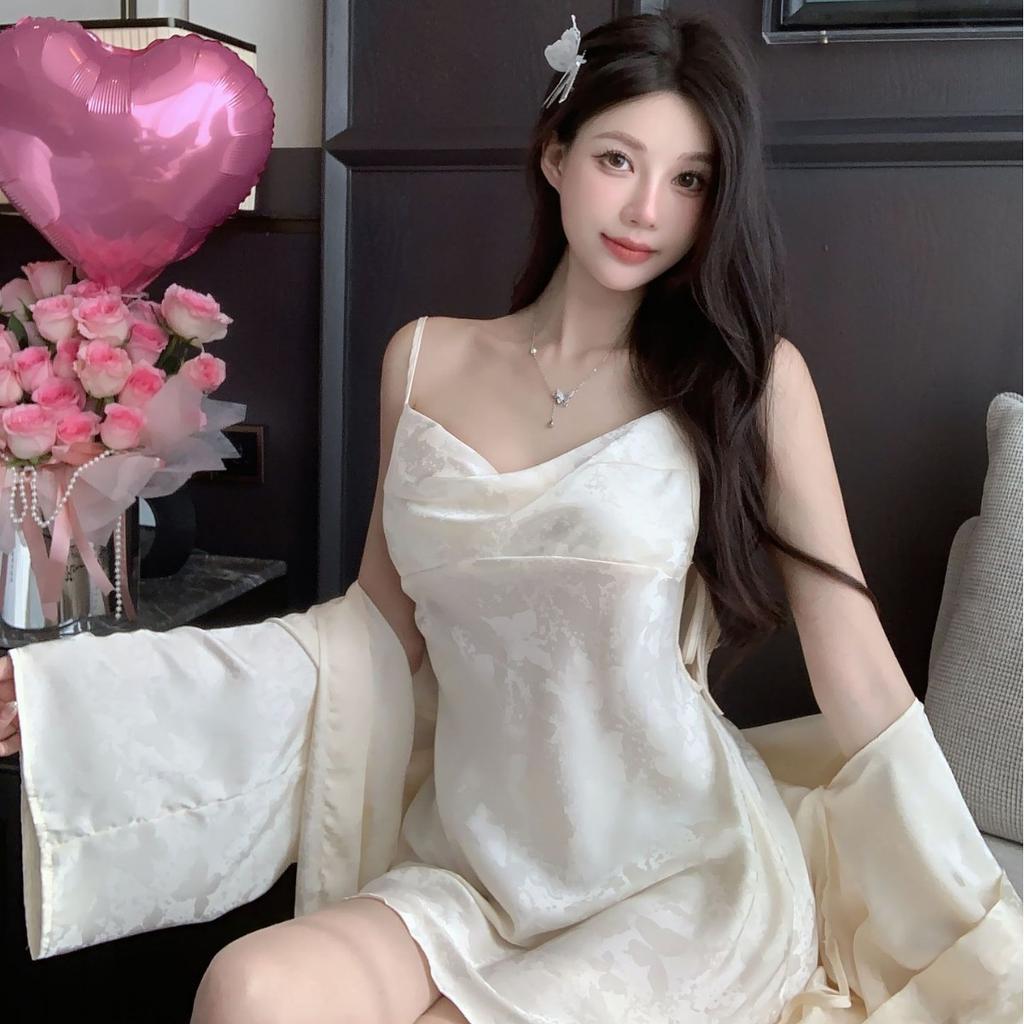 Sexy pajamas Women's Ice Ribbon chest pad New pure desire wind jacquard butterfly suspender nightgown nightgown silk loungewear