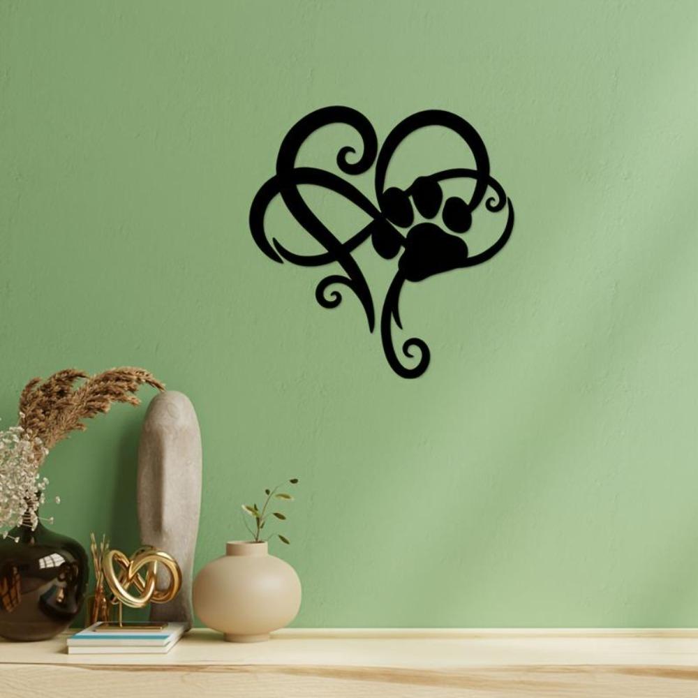 Herzförmige Pfote Metallwandkunst Gedenkgeschenk für Tierliebhaber Innen-Außen-Dekor