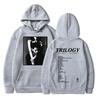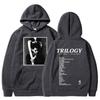 Dieser Hoodie ist eine stilvolle Hommage an The Weeknds Album Trilogy und verfügt über einen Stehkragen und ein Langarmdesign.. Hergestellt aus dünnem Polyester-Material, bietet es eine bequeme und lockere Passform, perfekt für Freizeitkleidung.. Die Innenseite ist mit Polyesterfaser gefüttert für zusätzliche Wärme und Komfort.. Der Hoodie ist mit einem einzigartigen Muster verziert, was ihn zu einem Hingucker für Fans und Modebegeisterte gleichermaßen macht.
