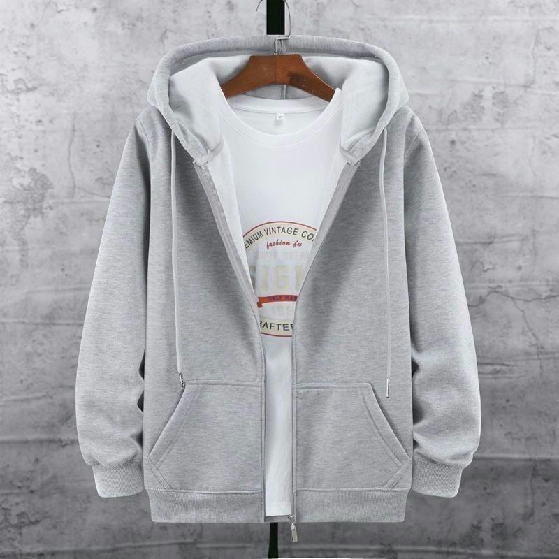 Herren Baumwoll Kapuzen Reißverschluss Strickjacke: Großformat, Lockere Passform, Unifarben, Trendiger Hoodie mit Fleecefutter für Herbst und Winter.