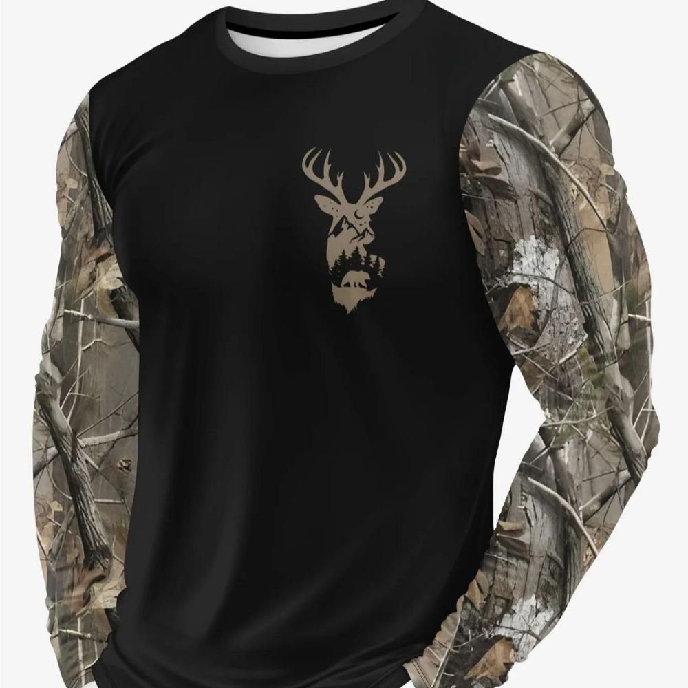 Spring Autumn Men's Camo Disguise Print Long Sleeve T-Shirt Outdoor Hunting Crew Neck Top Outdoor Streetwear Fashion Women Pullover Clothing