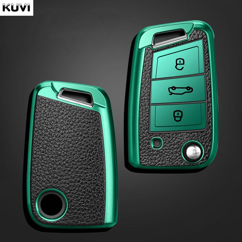 Für Volkswagen VW Polo Golf7 MK7 Tiguan für Skoda Octavia Kodiaq Karoq für Seat Ateca Autoschlüsseletui Abdeckung Tasche Schlüsselanhänger Schutz