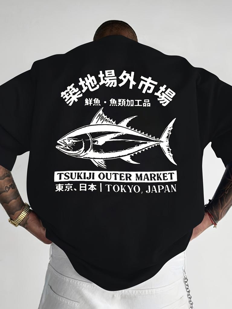 New Mens Casual 100 Cotton Fish Print Loose Roundneck Tshirt Fashion Breathable Comfortable Cool Daily Summer Outdoor Use