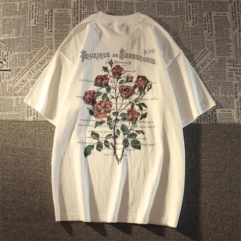 New Fashion American Retro Rose 100 Cotton Adult Mens Daily Cool Comfortable Versatile Soft Breathable Shortsleeved Tshirt