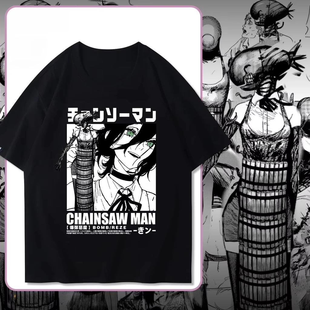 2025 Sommer Anime Japanische Kettensägenbombe Teufel Reze Druck Herren T-Shirt 100% Baumwolle Outdoor Sport Party Lässig Straße Kurzarm