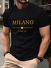 Milano Italien Letter Print Herren T-Shirts Baumwolle Sommer Oversized Rundhals Oberteile Kurzarm Weiches T-Shirt Lässige Herrenbekleidung