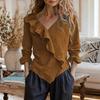 Women's Ruffle V-Neck Linen Blouse - Loose Long-Sleeve Casual Shirt