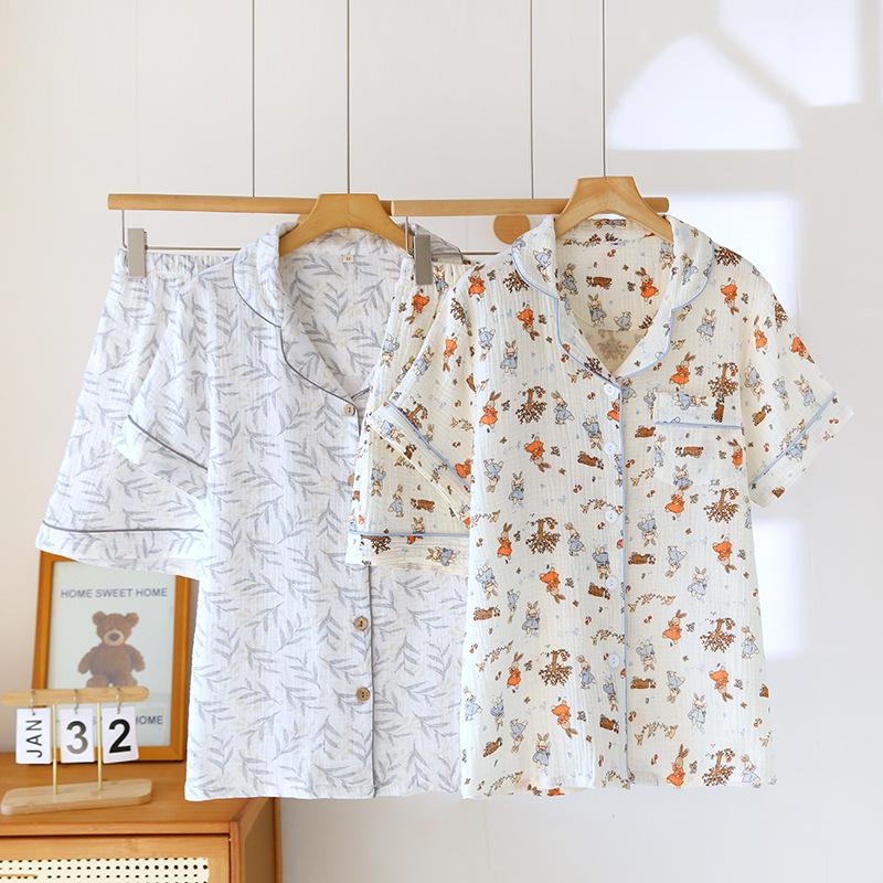 2026 New Summer Women's Pajama Set 100% Cotton Crepe Large Short Sleeve Shorts Two Piece Home Clothes Sleepwear Ladies