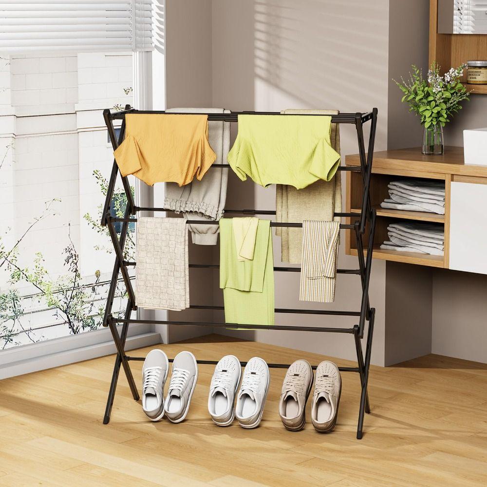 Überdimensioniertes 3-stufiges Wäscheständer Leichtes Metall Ausziehbarer Kleiderständer Zusammenklappbar Rostfrei Boden-Trockenstange Camping