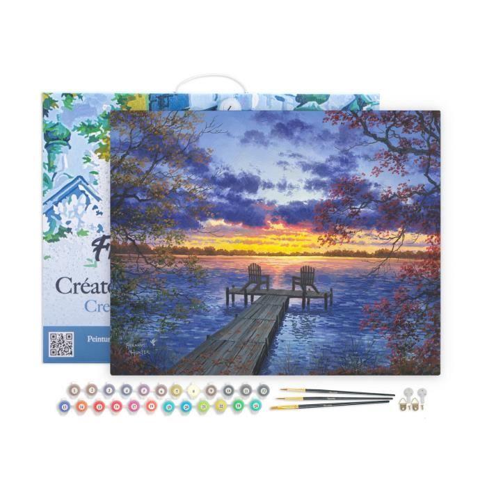 Peinture par numéro - figured art - ponton au coucher de soleil - 40x50cm - inclus : toile, pinceaux, peinture
