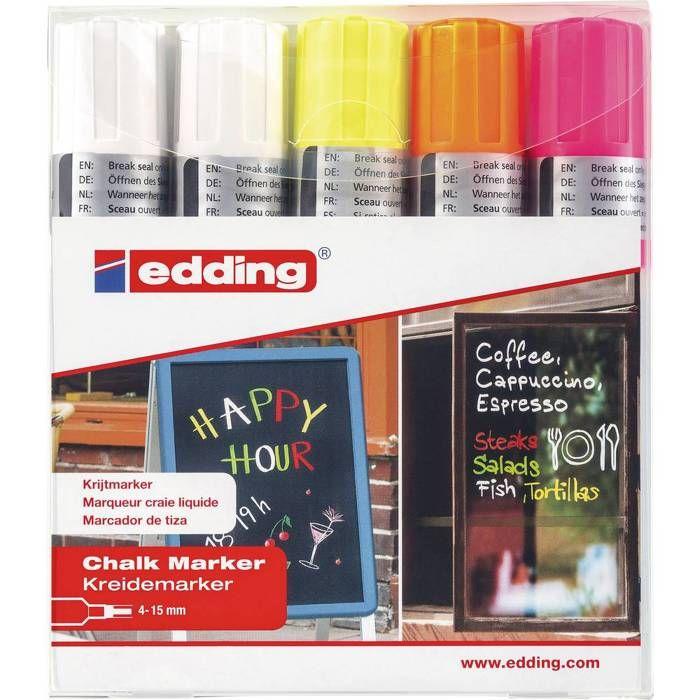 Craies liquides - edding - e4090 - assortiment de 5 - taille xl - couleurs fluos