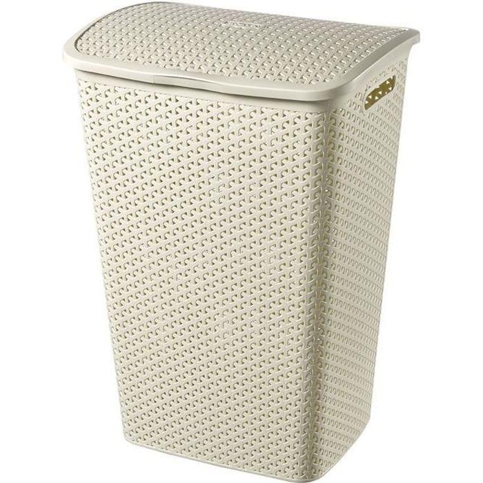 Coffre à linge - curver - my style - aspect rotin - 55 l - beige