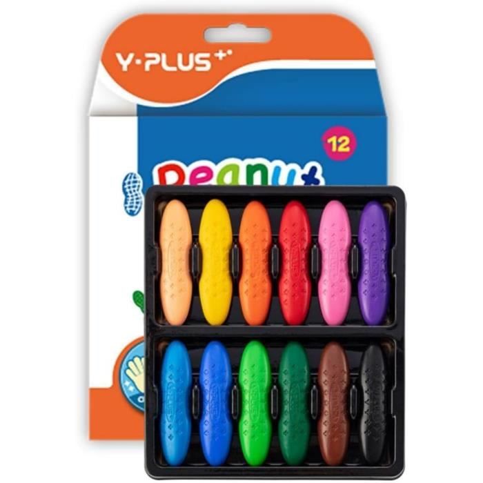 Crayons de couleur - yplus - cacahuètes - non toxiques - 12 couleurs - pour enfants de 1 à 4 ans