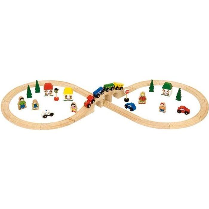Circuit train en bois - 40 pièces - multicolore - beige - 3 ans