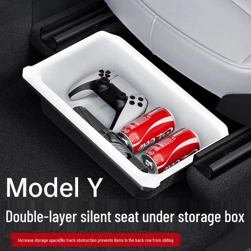 Tesla Model Y Überarbeiteter Stauraum unter dem Sitz und Organizer für die Mittelkonsole
