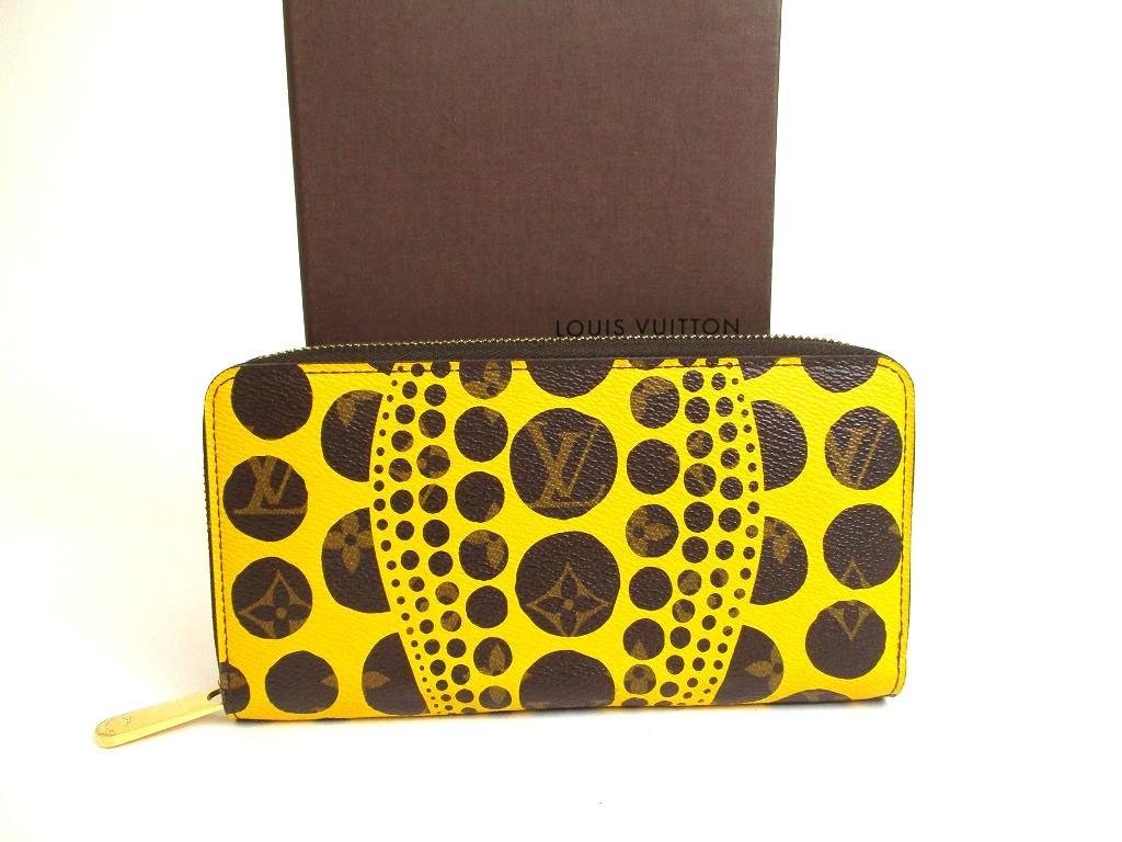 Produkt : LOUIS VUITTON Monogram Gelbes Leder Kusama Yayoi Punkte Zippy Geldbörse #b048