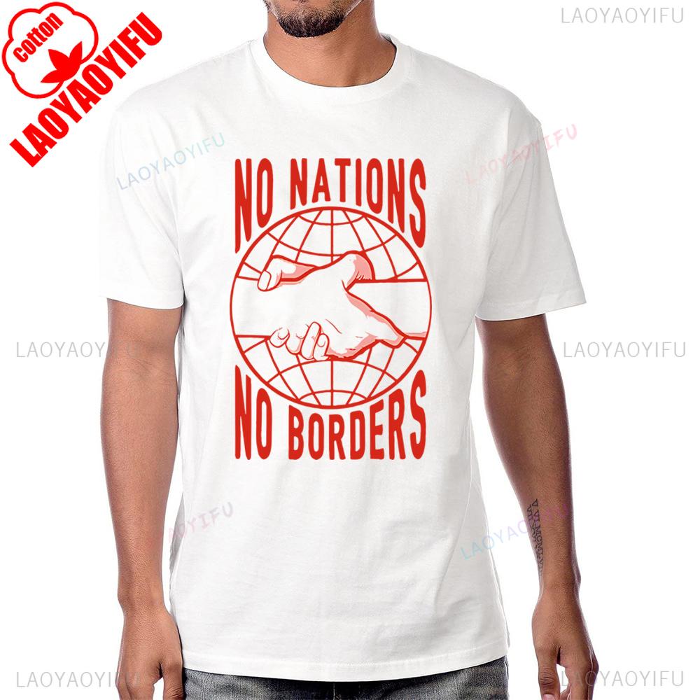 Keine Nationen Keine Grenzen Grafik Friedenshändedruck T-Shirt Lässige Mode Locker Harajuku Herren T-Shirt Baumwolle Kurzarm Atmungsaktive T-Shirts