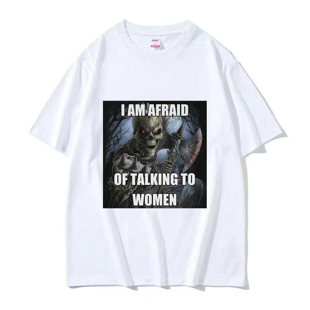 Ich habe Angst, mit Frauen zu reden T-Shirts Hartes Skelett Meme Grafik Kurzarm-T-Shirts Hohe Qualität Baumwolle Übergroßes T-Shirt