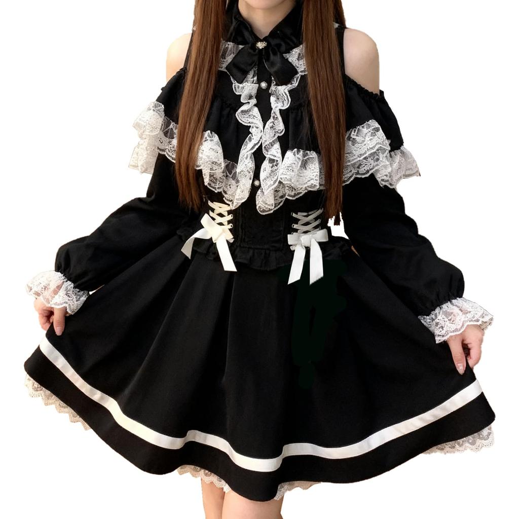 Sivrusn Gothic Lolita Mori Mini Süßes Cosplay Lolita Kleid mit und Harajuku Süßes Halloween Kulturelles Schulgröße M Kleid, Mädchen, Kleid, Gothic-Stil