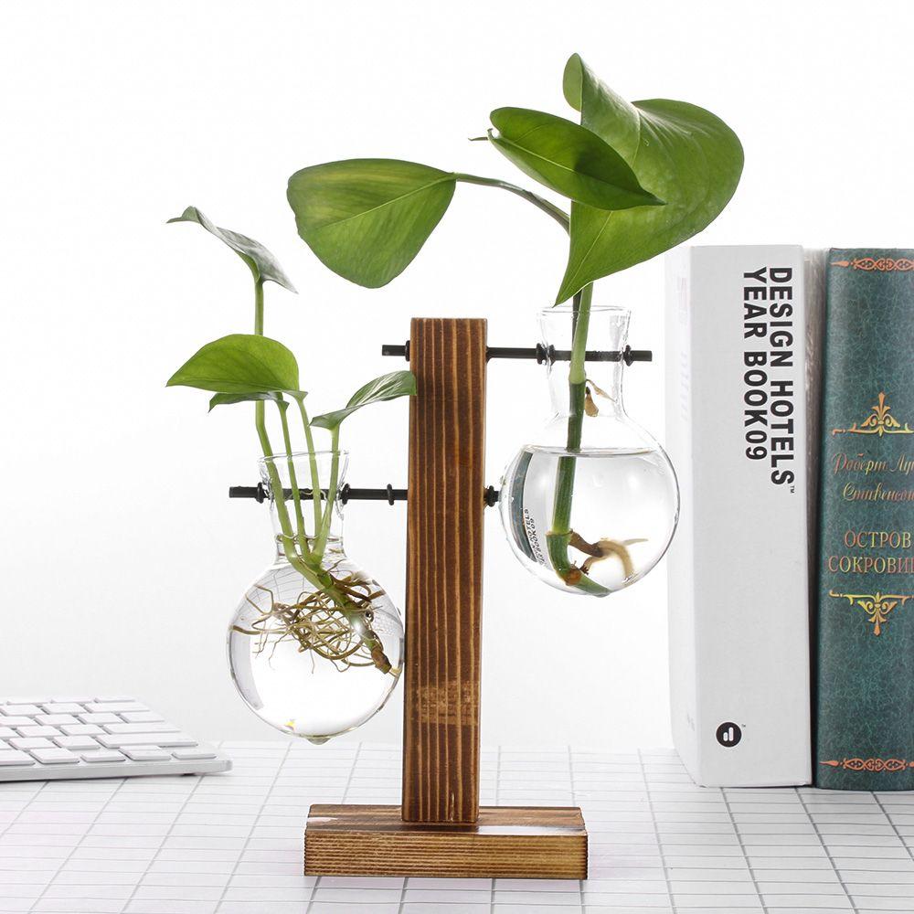 Home Decor Planter Terrarium Tabletop Wooden Frame Glass Vase Hydroponic Plant Vases Flower Pot