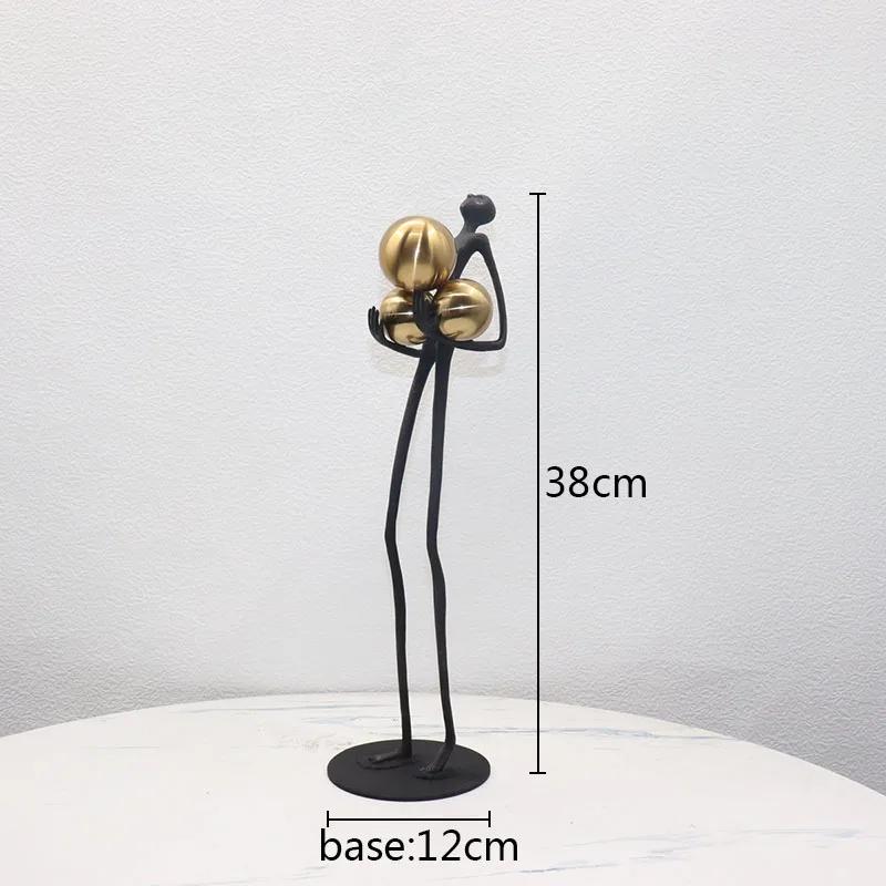 Black Matchstick Men Statue Golden Ball Decoration Character Sculpture Desktop Abstract Character Figurines Home Decoration