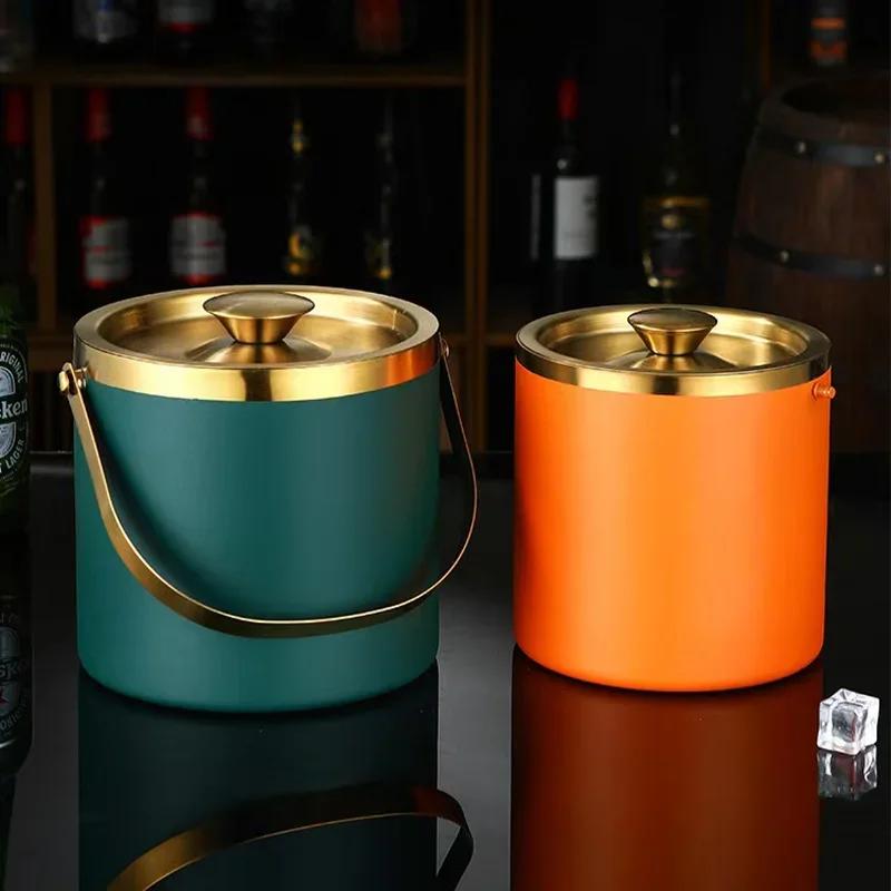 304 2L/3L Stainless Steel Ice Bucket Portable Double Wall Insulated with Lid Hotel Wine Champagne Whiskey Beverage Beer Tools