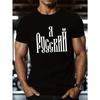 European Size 1pc Men's Casual Short Sleeve TShirt with Cyrillic Print Black White Graphic, Breathable Knit Fabric, Regular Fit Round Neck