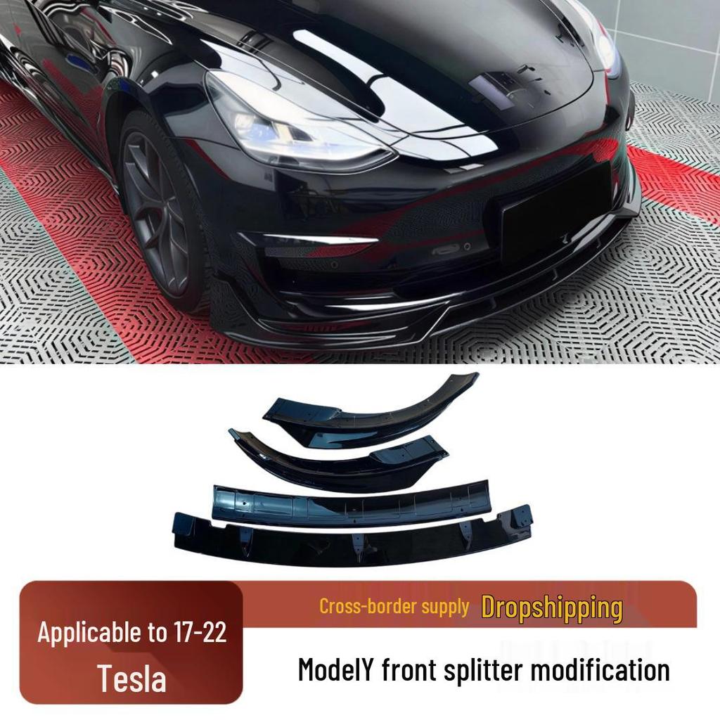 17-22 Tesla Model Y Front Lip Bumper Kit: 4-Section Decorative Accessory