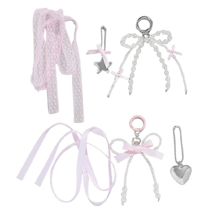 3pcs Imitation Pearls Bowknot Heart Star Keyring Key Chain Sophisticated Keyring Handmade Car Key Decoration for Women