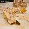 Damen Gold Stiletto Sandalen Offene Zehen Mode Party Kleider Schuhe Spitze Geteilte Zehen Hohe Absätze Abend Schuhe Elegant Größe 35-42
