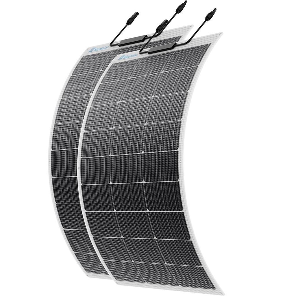 [Dünn und Leicht] Das Solarmodul wiegt nur 1,5 kg und ist 2,5 mm dünn, wodurch es einfach zu tragen, zu installieren, aufzuhängen und zu demontieren ist.. Der minimale Krümmungsradius des flexiblen Solarmoduls erreicht 17,7 Zoll.