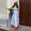 Blue plaid dress European and American summer new fake two-piece single-breasted splicing suspender dress