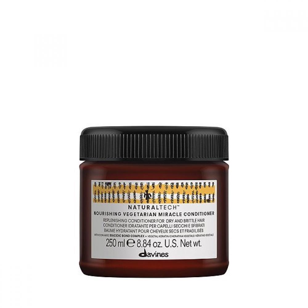 Davines Nourishing Vegetarian Miracle Conditioner 250ml is a buttery conditioner that supplies moisture and nutrients to fragile and damaged hair. This product makes the hair soft and hydrated, creating a condition that is easy to comb through. Major fragrance notes include rosemary, sage, basil, and thyme, with core notes of coriander and cypress leaves. Musk is used in the base note to deliver a deep and rich scent.