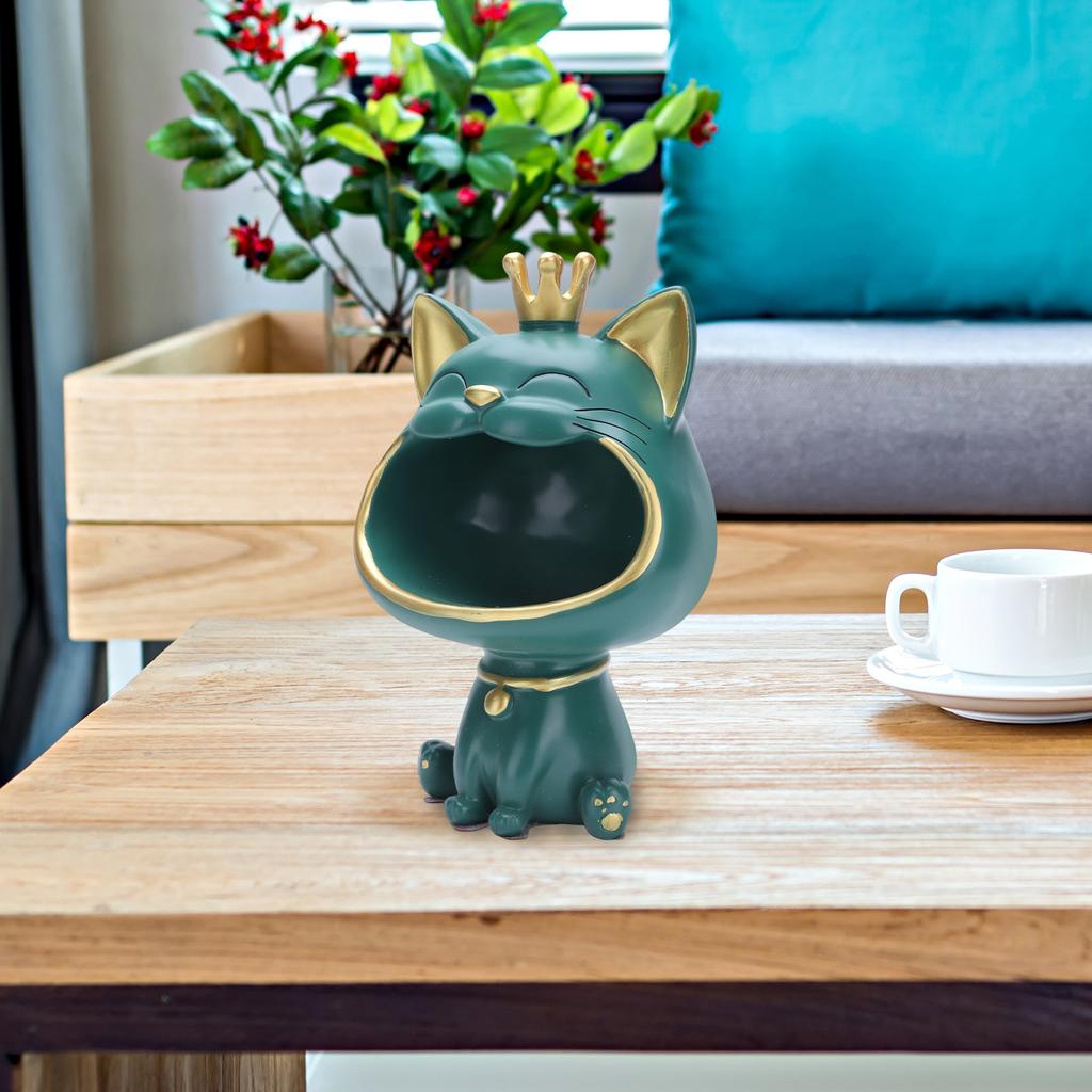 Lucky Laughing Cat Resin Statue Creative Big Mouths Cat Container Cute Desktop Key Small Storage Box Decoration Accessories