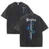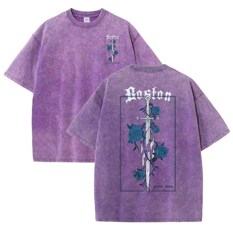 Rose And Sword Printed Washed neutral wear summer multi-color round-neck T-shirts, pure cotton clothing for both Women
