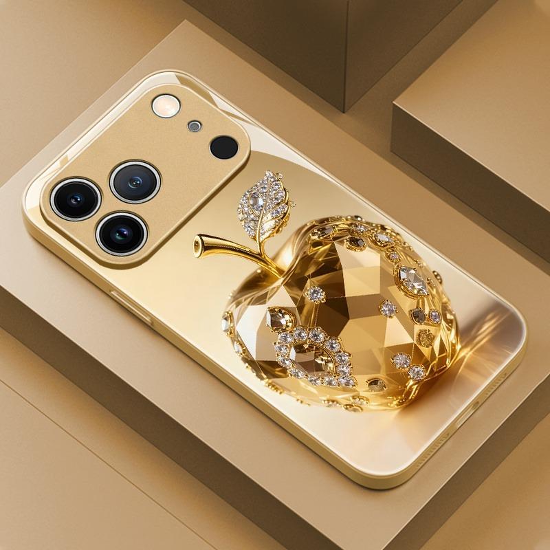 Luxus Juwel Für Apfelmuster Gold Metallic Lack Glas Handyhülle Für iPhone 17 16 15 14 13 12 11 Pro Max Plus 17Air 16E Hülle