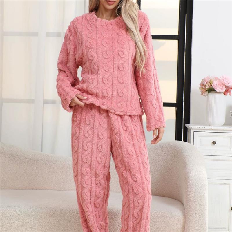 Herbst Winter Warmes 2-teiliges Pyjama-Set für Damen Hauskleidung Flanell Langarm Oberteile und Hosen Hauskleidung Loungewear