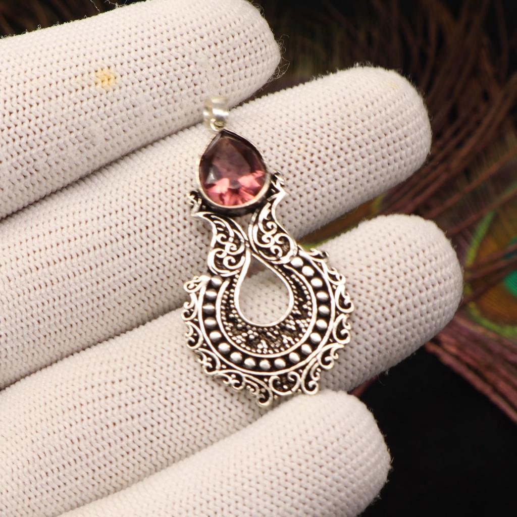 Natürlicher Rhodolith Edelstein 925 Sterling Silber Oxidiert Anhänger 1,8" Silberschmuck Hochzeitsgeschenk Für Braut/Sie CP-45-16
