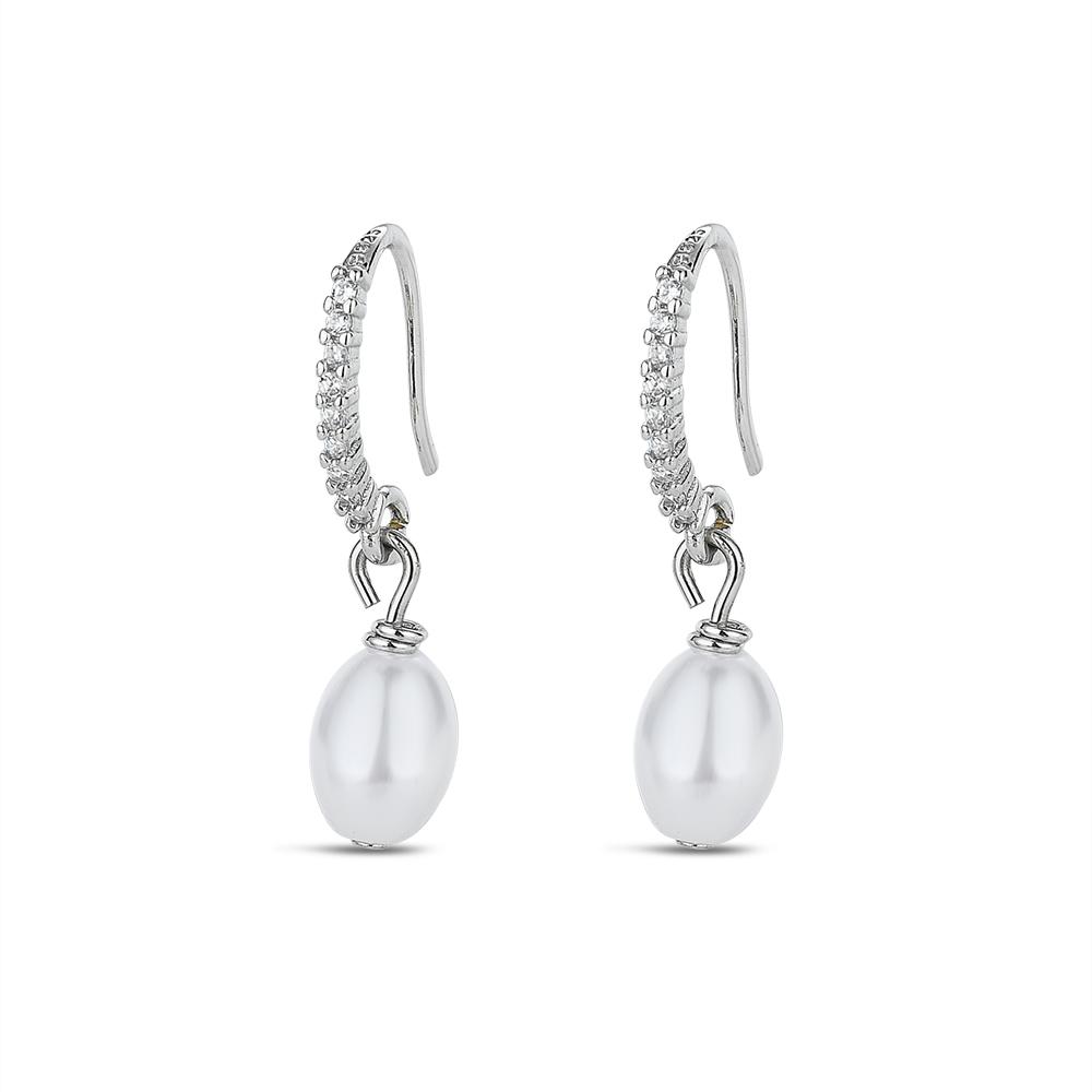 Ohrringe mit weißem Zirkonia und Perlenimitat