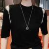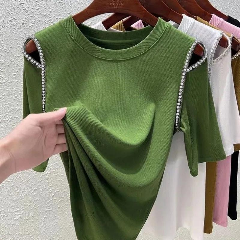Damen Schwarzes Rollkragen Oberteil 3/4 Ärmel Cold Shoulder Schlanke Bluse Strassstein Detail